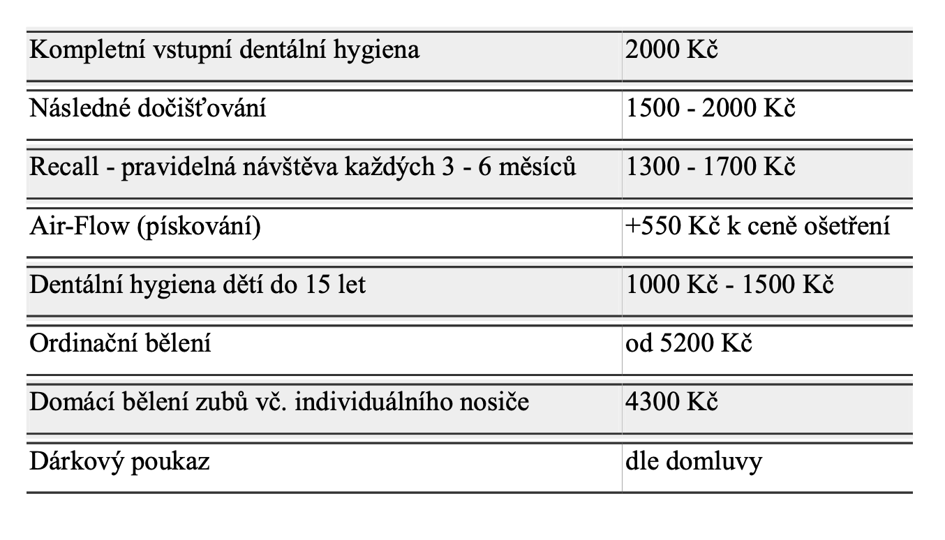 Ceny jsou pouze orientační a mohou se lišit podle času, náročnosti práce či množství použitého materiálu.